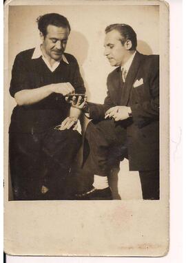 Foto do maestro Mario de Bruno e Sergio Magnani, com dedicatória no verso.