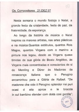 SM - 3.1.6 - Brasil - Rádio Inconfidência de Minas Gerais AM, 1997 a 2000. Textos de apresentação do programa: Os Compositores.